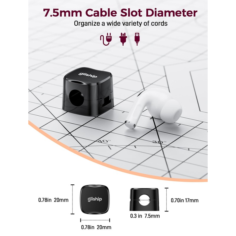 gliship Magnetic Cable/ Cord/ Wire Management Holder Organizer Tired of dealing with messy wires on your desktop? Look no further! Our cable clip organizer is the perfect solution to organize and beautify your workspace. Use it on your desktop, table side, table bottom, wall, kitchen, car, nightstand, or anywhere else you need to keep your wires organized and secure. ๐—ฆ๐—ฎ๐˜† ๐—ด๐—ผ๐—ผ๐—ฑ๐—ฏ๐˜†๐—ฒ ๐˜๐—ผ ๐—บ๐—ฒ๐˜€๐˜€๐˜† ๐˜„๐—ถ๐—ฟ๐—ฒ๐˜€ ๐—ฎ๐—ป๐—ฑ ๐—ต๐—ฒ๐—น๐—น๐—ผ ๐˜๐—ผ ๐—ฎ ๐—บ๐—ผ๐—ฟ๐—ฒ ๐—ฏ๐—ฒ๐—ฎ๐˜‚๐˜๐—ถ๐—ณ๐˜‚๐—น ๐—ฎ๐—ป๐—ฑ ๐—ผ๐—ฟ๐—ด๐—ฎ๐—ป๐—ถ๐˜‡๐—ฒ๐—ฑ ๐˜€๐—ฝ๐—ฎ๐—ฐ๐—ฒ! HOW TO USE? STEP 1: Clean the surface Cleaning the surface of the object to be pasted can fully combine the back glue with the contact surface. STEP 2: Paste the acrylic tape Please align the acrylic tape with the bottom, peel off the sticker on the back, align it with the posted position, and press it. STEP 3: Press Evenly, Wait 24 Hours When pasting, press the wire clips slightly to make the back glue fully contact with the contact surface and wait for 24 hours before using, which will greatly improve the firmness. Note: Pay Attention to the Wire Size Range The wire to be fixed should be less than or equal to the inner diameter of the buckle to reduce the external force on the buckle and increase the service time. Compatible with 0.5-7.5mm cables