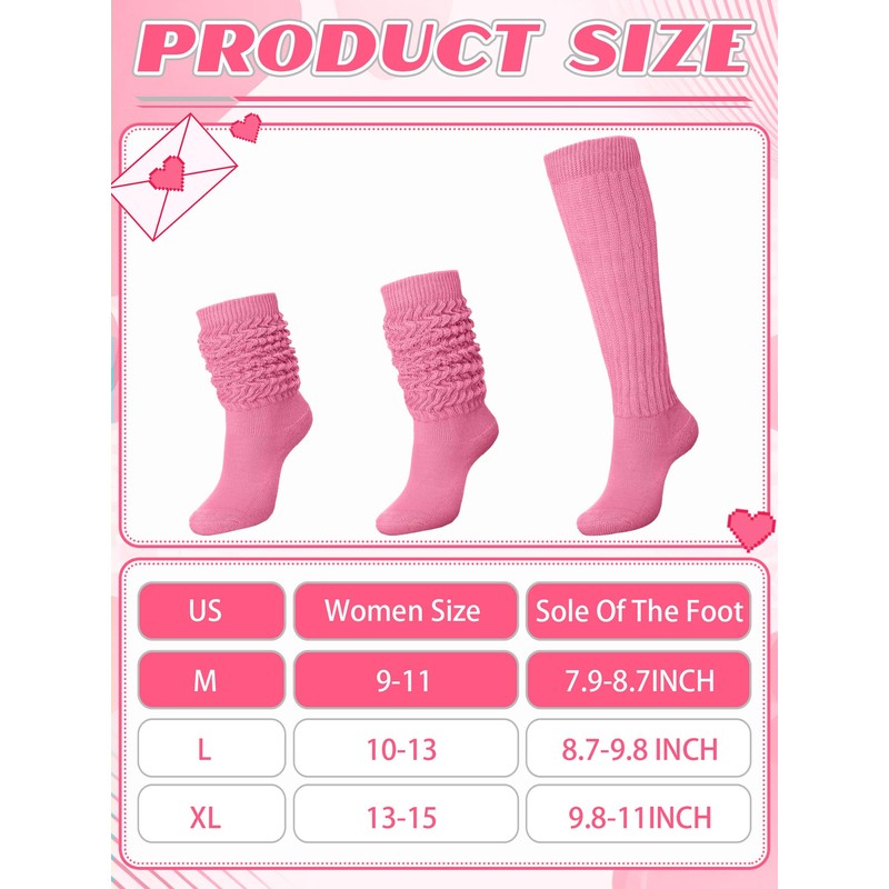 Glitopper Slouch Socks Slouchy Socks Pack Knee High Scrunch Socks 80s 90s Socks Cotton Stacked Socks Boot Socks(Pink,9-11)