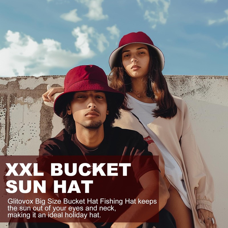 - Oversized Bucket Hat: XX-Large fits super large heads 24.4"-25.2"(please choose carefully). Glitovox reversible classic solid fishing hat is perfect for anywhere you go with outdoor activities, suitable for men and women of all ages.