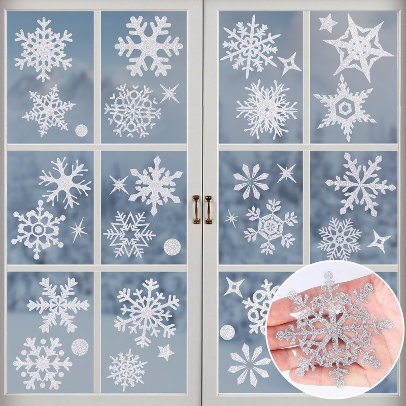 - Usage: These double-sided Christmas window stickers are ideal for home windows, sliding glass door, glass window, shop window, ceramic tiles, and any other smooth surface.These snowflake stickers can enhance your home or party decor with ease.