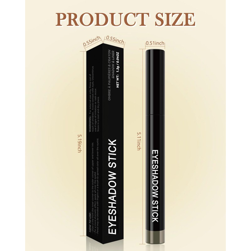 • MULTI-PURPOSE - This is a multi-purpose eye makeup product, you can use it as an eye shadow stick to apply eye shadow, as an eye liner pencil to apply eyeliner for a bright eye look, or as a blush to brighten your face.