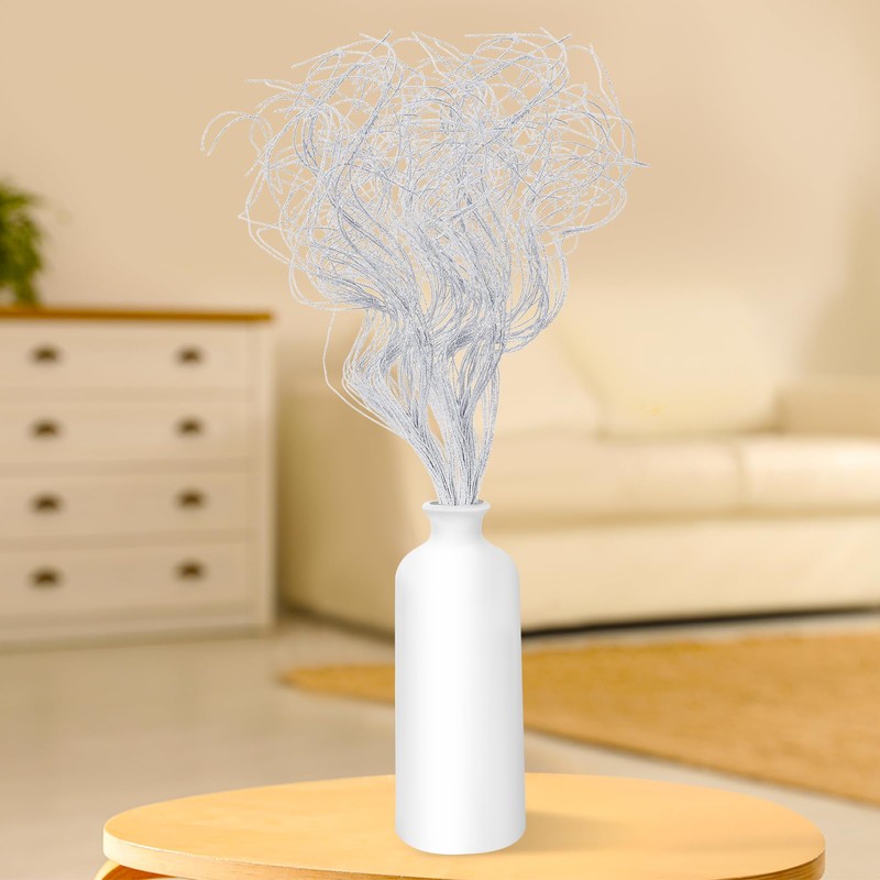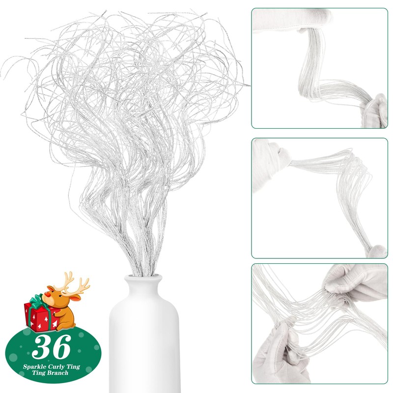 Glitter Curly Ting Ting Branches Christmas Branches Vase Filler Artificial Curly Twigs for Christmas Tree Garland Wreath Decoration, Craft Vases Home Garden Decoration (White, 36 Pieces)