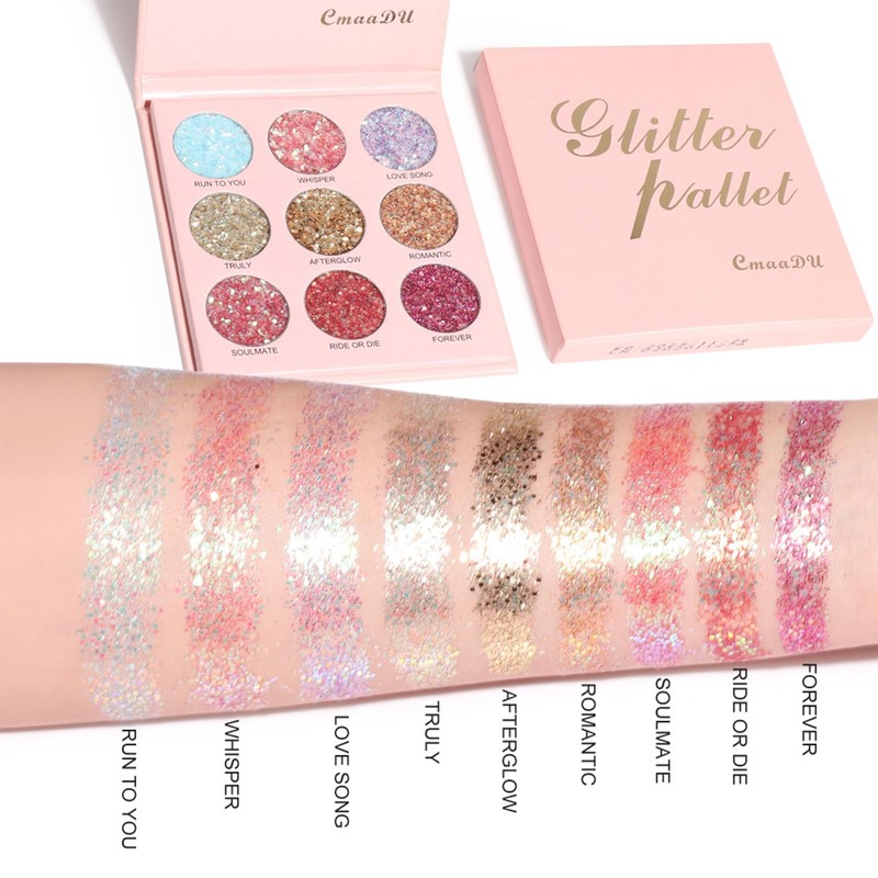 - FULL GLITTER EYESHADOW - A pressed glitter eyeshadow palette featuring 9 dazzling shades. Get a luminescent glow and savage metallic finish that drive seamen wild.