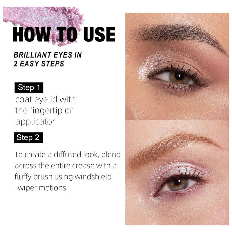 - Dazzling Glitter Finish: Features high-shine pigments that deliver an ultra-reflective, glossy finish. Perfect for party makeup, stage looks, or a shimmering everyday touch with this shimmer eyeshadow