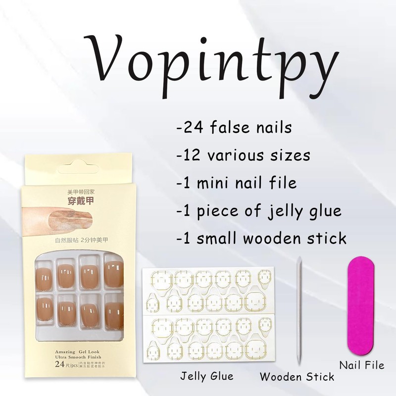 • 【Package & DIY Nails】You'll get 24 false nails in 12 sizes. 1 mini nail file, 1 small wooden stick, 1 piece of adhesive tab glue. You can safely choose a fake nail that fits your finger size and DIY your desired nail shape.