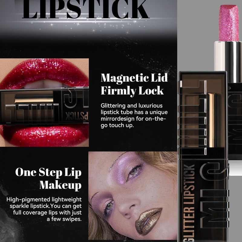 - Luxurious Metallic Look: Infused with pearlescent pigments and glitter, this lipstick creates a dazzling 3D effect with a luxurious metallic sheen, adding unmatched fashion glamor and confidence to your lips