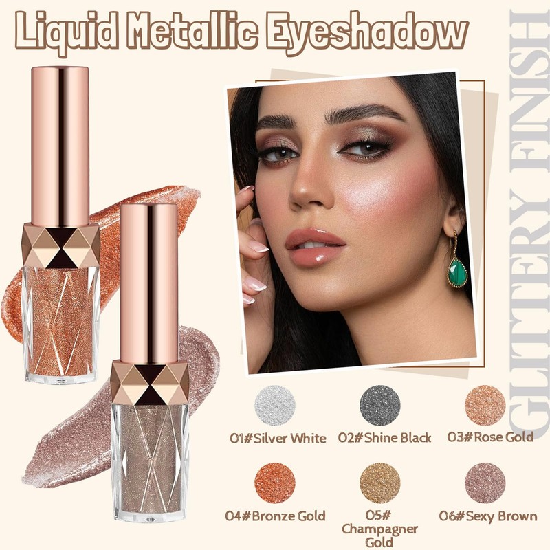 - ✨ Metallic liquid glitter eye shadow – liquid diamond eyeshadow is light and ultra-shiny and saturates your eyes with fascinating sparkle and shimmer. to achieve a brilliant, unique eye look