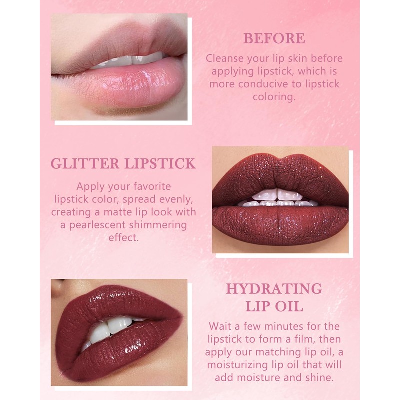 Package Include: Glitter Liquid Lipstick *1 + Hydrating Lip Glow Oil *1