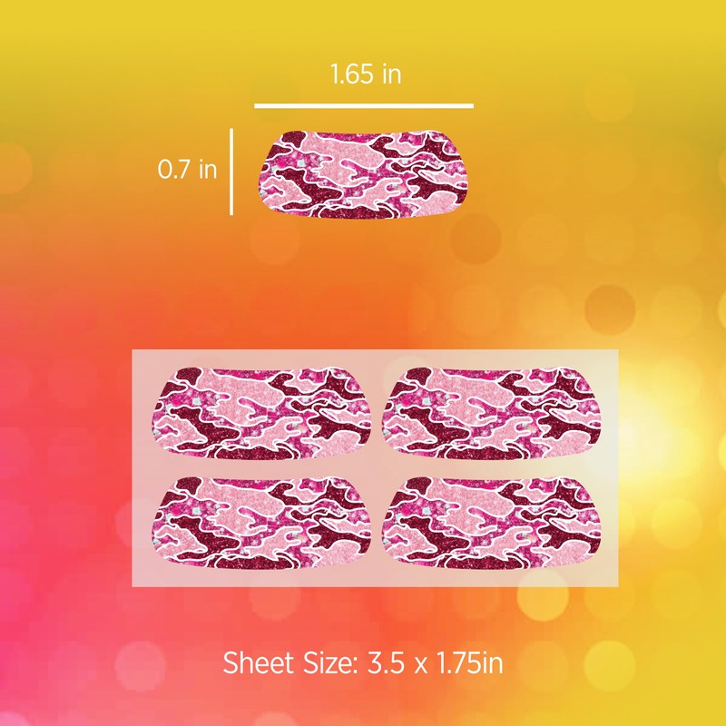 Glitter Pink Camo Face Stickers - 8 Classic Shaped Stickers - Easy to Use Decals for Festivals, Parties, Cowboy