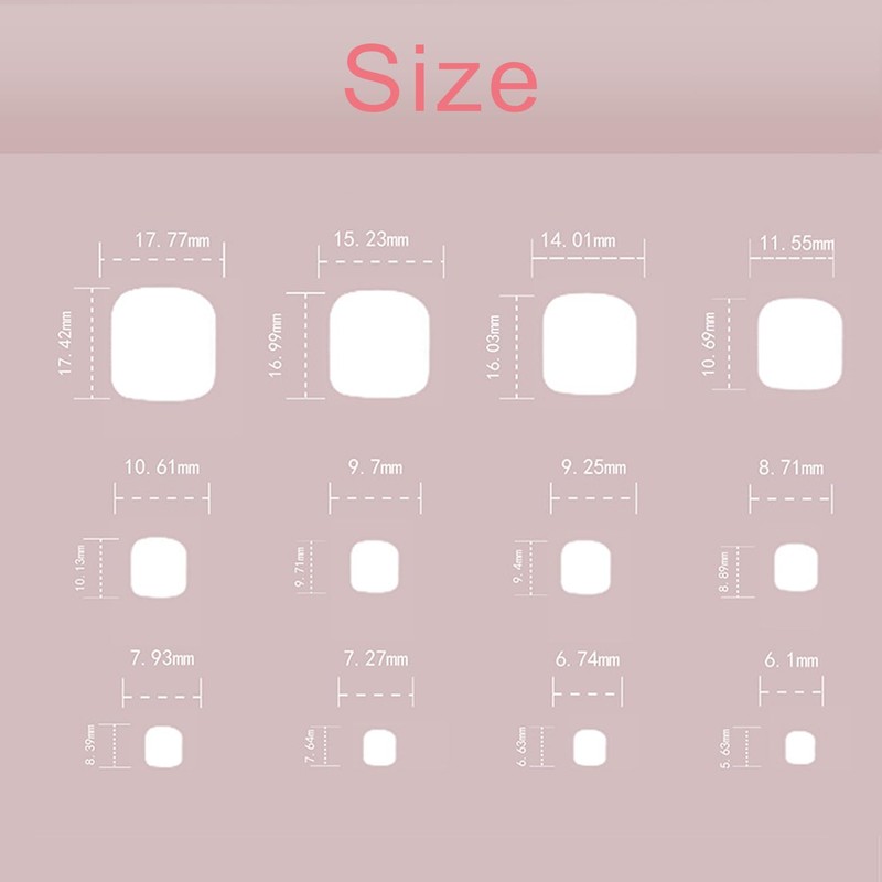 - 【Suggestion】Due to transportation reasons, the package does not contain glue, the durability of jelly gum is limited, I suggest you use your own glue. Nail adhesive tabs are better for temporary task, easy to remove and more friendly to natural toenails.Due to the different resolutions of the display screen,fake toenail may be slight color difference, please refer to the actual product.