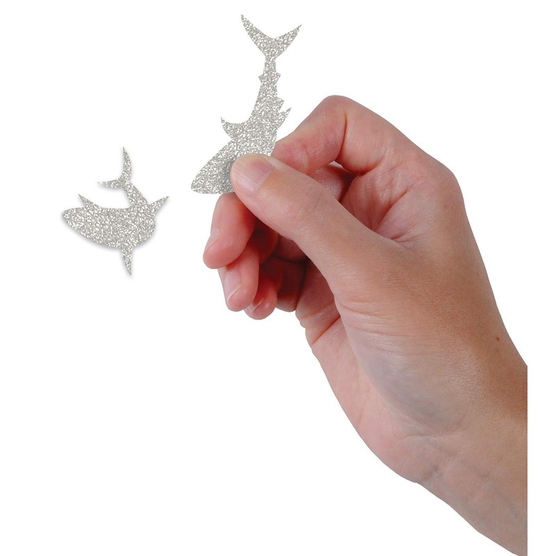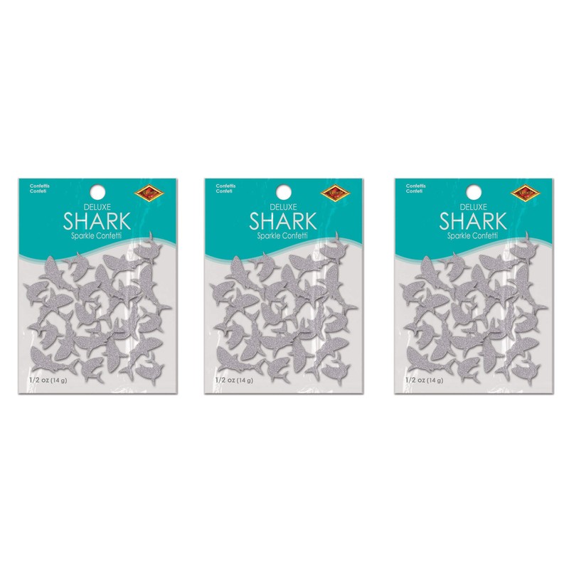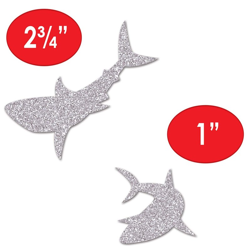 - Includes 1.5 Ounces of Glittered Silver Shark Party Confetti in the package