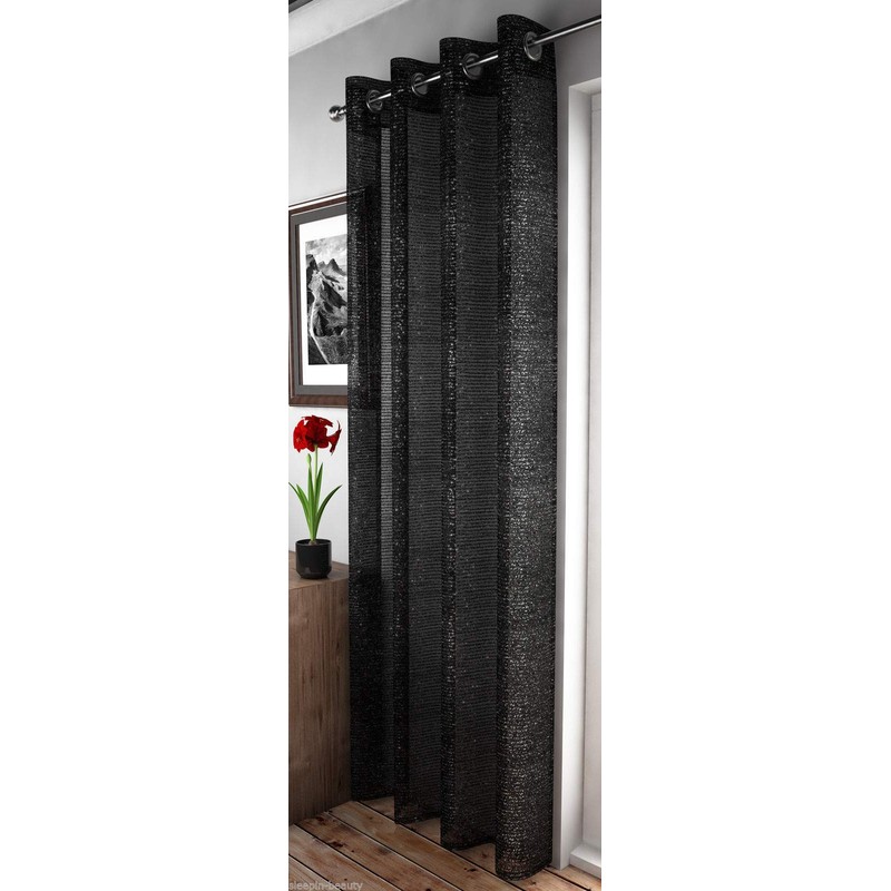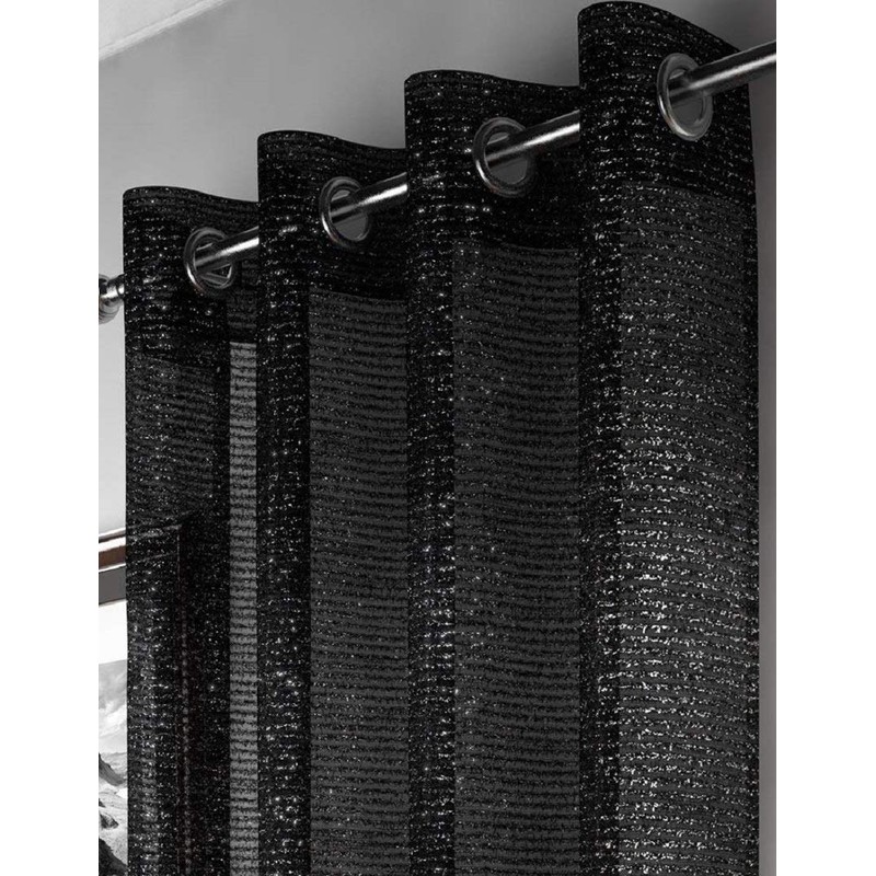 Glitter Sparkle Ring Top Voile Curtain Panel - Black (Adele 53" W x 90" D)