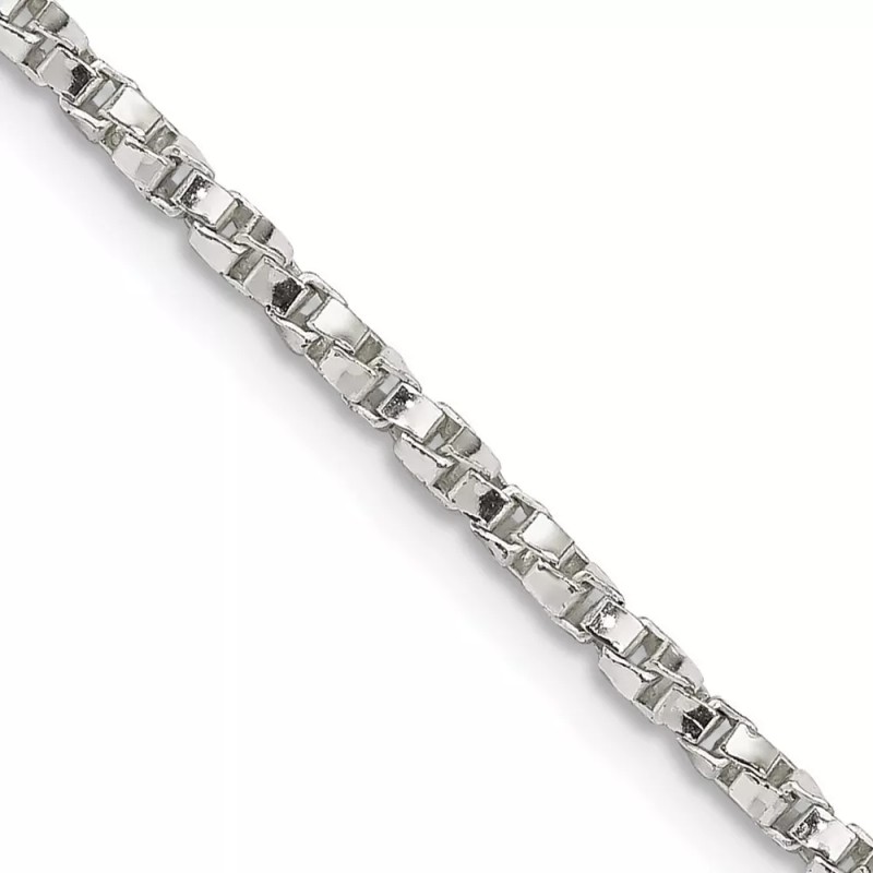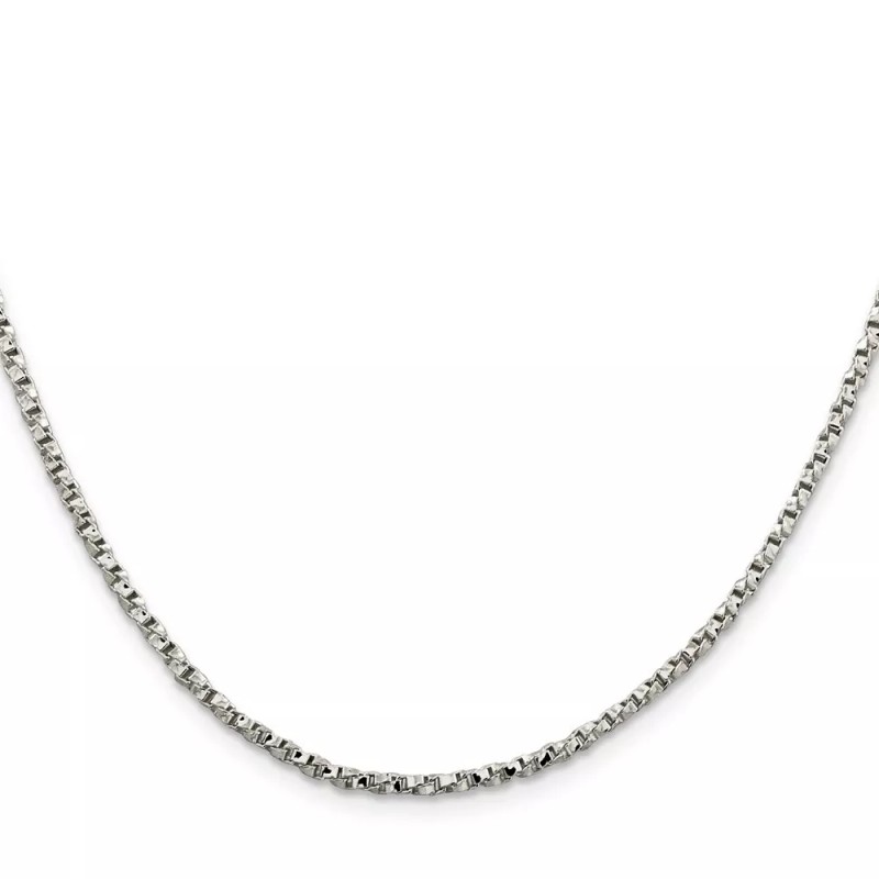 Material: Primary - Purity:925 | Finish:Polished | Length of Item:20 in | Chain Length:20 in | Chain Type:Box | Chain Width:2.25 mm | Clasp /Connector:Lobster | Feature:Solid | Manufacturing Process:Wire Formed | Material: Primary:Sterling Silver | Item Weight U/M:gm | Width of Item:2.25 mm | Product Type:Jewelry | Jewelry Type:Necklaces | Sold By Unit:Each | Necklace Type:Chain Styles | Gender:Women's | Texture:Twisted | Material: Primary - Color:White | Chain Type 2:Pendant