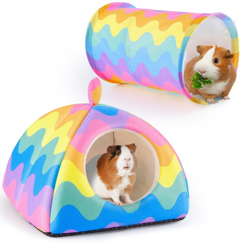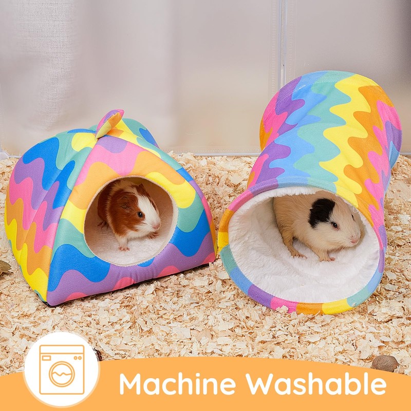 Glittme Guinea Pig Hideout, Soft Guinea Pig Bed and Tunnel, 2 Pack Washable Guinea Pig Tunnel with House Guinea Pig Accessories for Hamster, Rabbit, Bunny, Small Animal