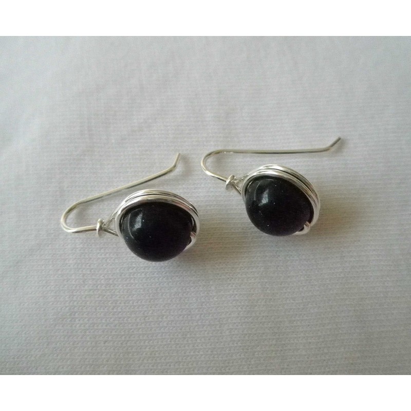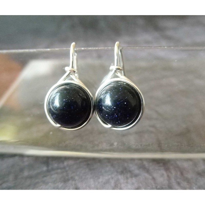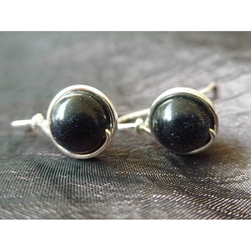 Diese unaufdringlichen und alltagstauglichen Ohrhänger wurden aus dem synthetischen Edelstein Blaufluss und Schmuckdraht gefertigt.