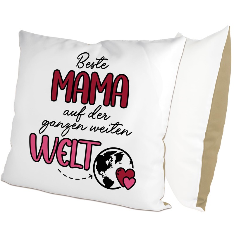 glitzertassen.de® | Beste Mama auf der Welt | Cushion with Saying | Gift | Mother's Day | Cushion with Print | Love | Decorative Cushion | Photo Cushion | Cuddly Cushion | White/Mocha