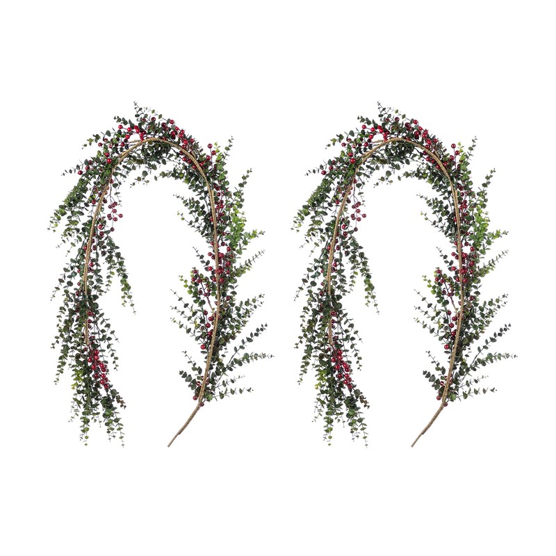 - Packaging Size: The package contains two 6-ft-long eucalyptus garlands, featured vibrant eucalyptus leaves and red berries, perfect for draping over banisters, doorways, or mantels to enhance the holiday spirit