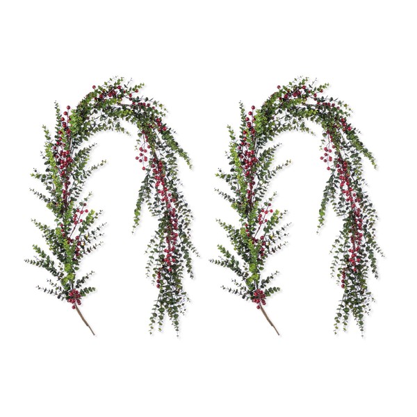 Glitzhome 2PCS 6ft Artificial Christmas Garland, Greenery Eucalyptus Garland with Red Berries for Table, Mantle, Front Door, Window, Wedding, Banquet, Holiday Party Decoration
