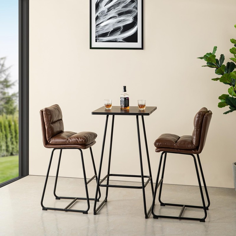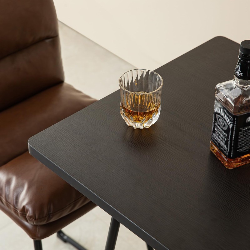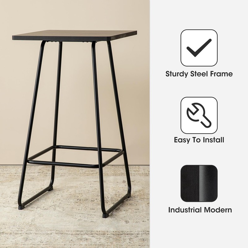 - STURDY AND DURABLE: This bar table features an open metal base and legs keep it visually light, and square-shaped support adds sturdiness and serves as a footrest. Heavy-Duty metal frame has good stability and Black Oak Veneer crafted for long lasting durability, coated in a wear resistant finish, ideal for indoor and outdoor use.
