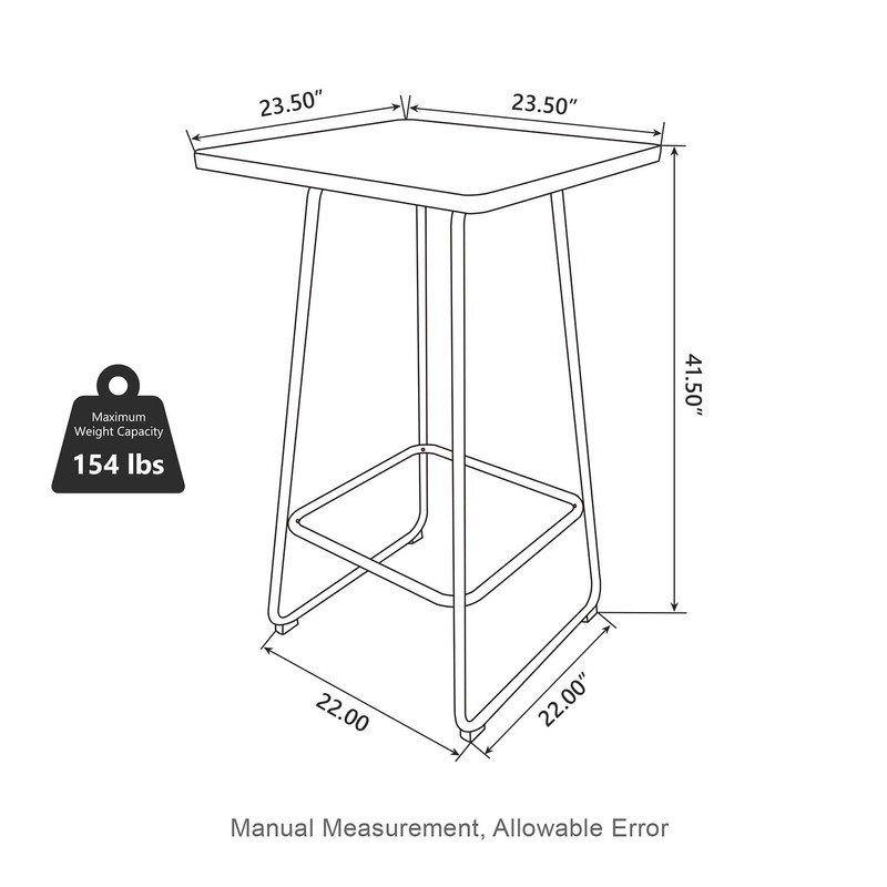 - OVERALL DIMENSIONS: 22"(L) x 22"(W) x 41.5"(H). Desktop size: 23.5"L*23.5"W*41.75"H; Weight Capacity - 154lbs. This table has enough space for two people to enjoy a morning coffee or an intimate dinner together.