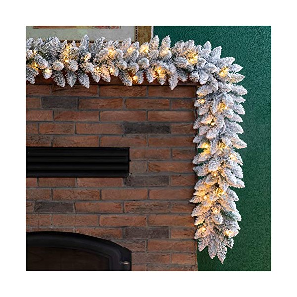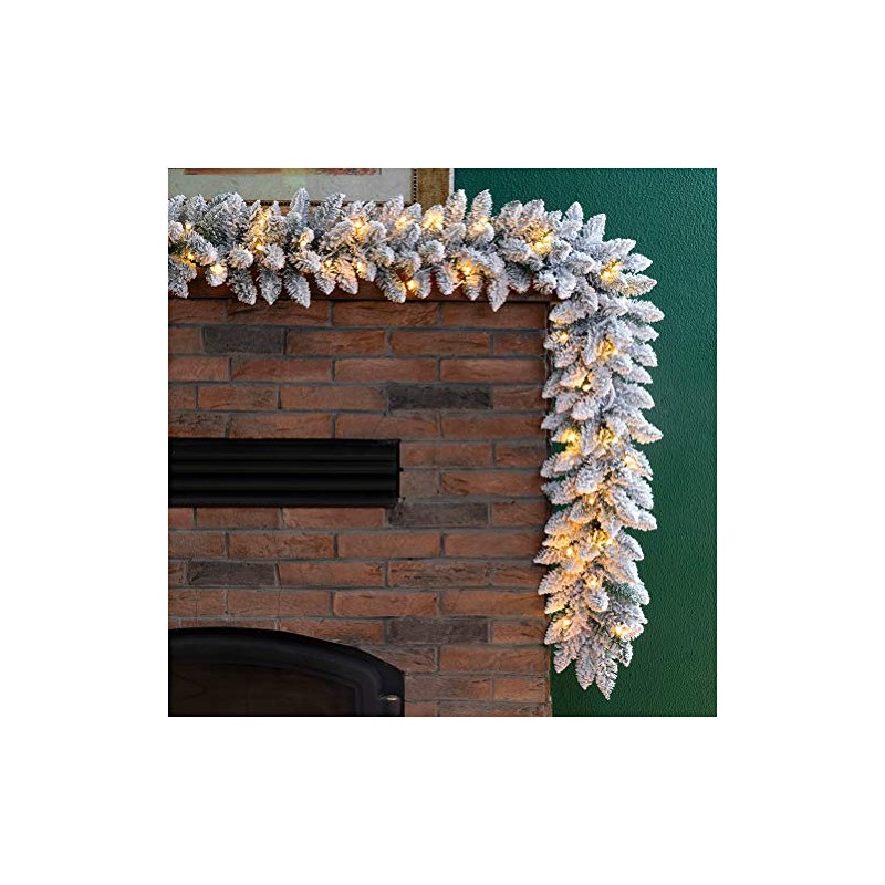 glitzhome Pre-Lit Snow Flocked Christmas Garland with Warm White LED Light