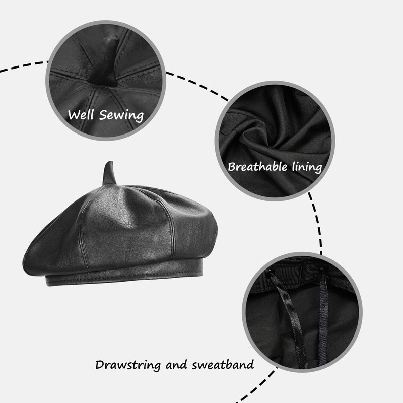 - New Coming - This beret hat is made of PU leather. This material is lightweight, could keep it’s shape well.