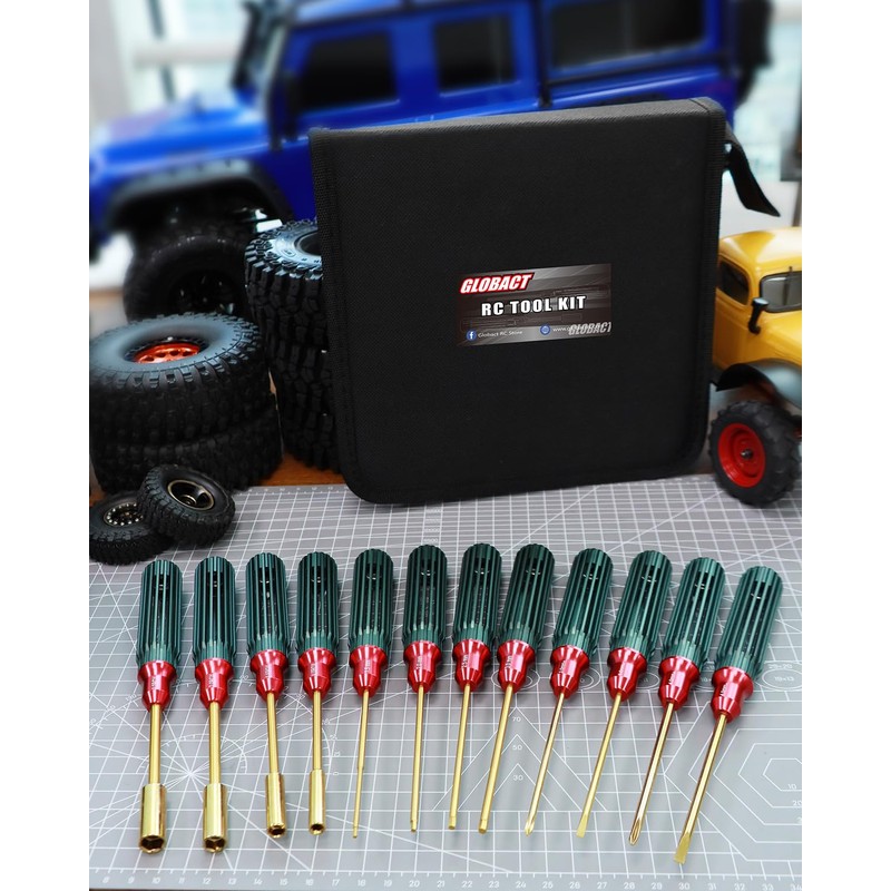 GLOBACT New Upgrade RC Screwdriver Kit RC Hex Driver Set RC Tool Kit RC Repair Tool Box for Traxxas Axial Arrma Losi Redcat HPI HSP Tamiya 1/8 1/10 RC Car Truck Crawler (12Pcs Dark Green)