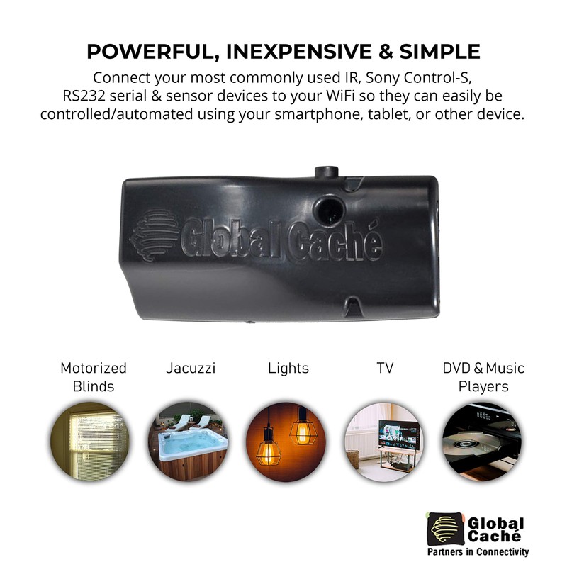 - CONTROLS AUTOMATED DEVICES VIA WIRED ETHERNET - The Global Caché iTach Flex IP allows you to instantly connect and control any automated system or protocol via an RJ45 connection.