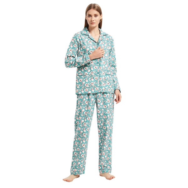 GLOBAL Flannel Pajamas for Women 2-Piece Comfy and Cozy Flannel Pj Set Cotton Loungwear