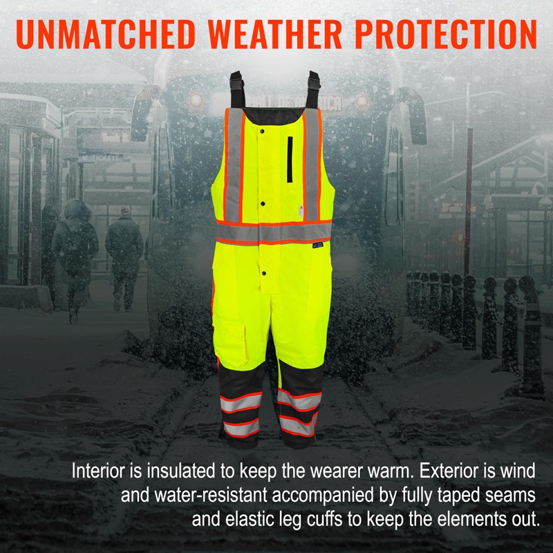 Global Glove High-Visibility Insulated Winter Bibs with Durable Water-Resistant Finish, Yellow/Green with Orange Trim and Reflective Material, Size 4XL/5XL