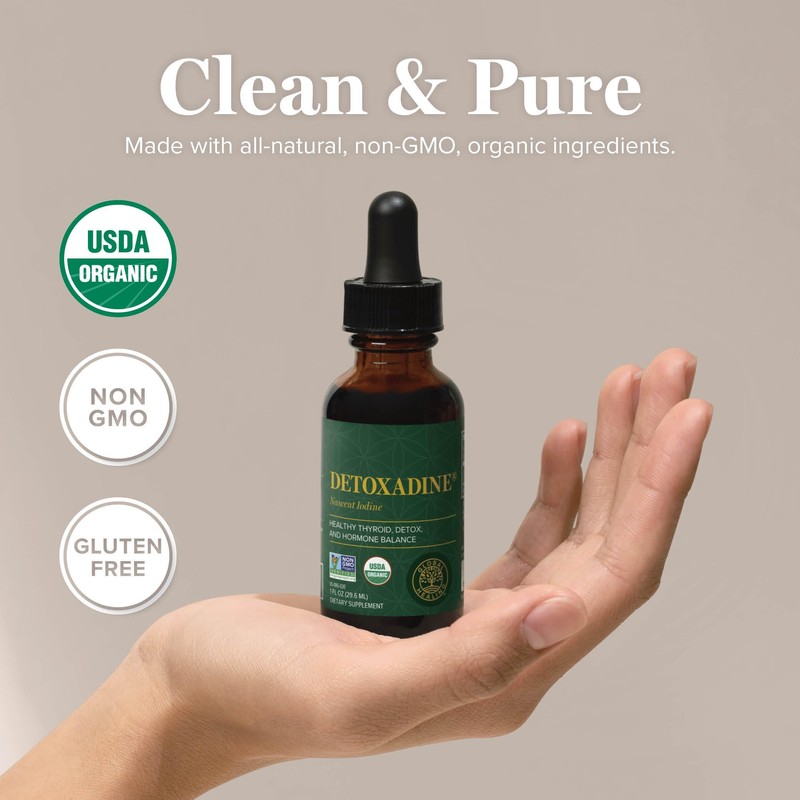 Global Healing Center - Detoxadine - Organic Nascent Liquid Iodine Supplement Drops for Thyroid Support, Detox Cleanse, and Metabolism - Non-GMO, Vegan, 200 Servings Iodine Drops (1 Oz)
