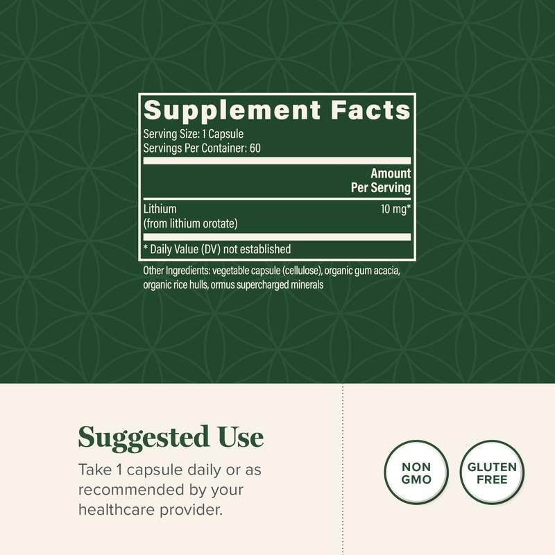 Global Healing Lithium Orotate 60 Capsules – Supports Mental Clarity, Mood Balance & Cognitive Function, Daily Wellness Supplement