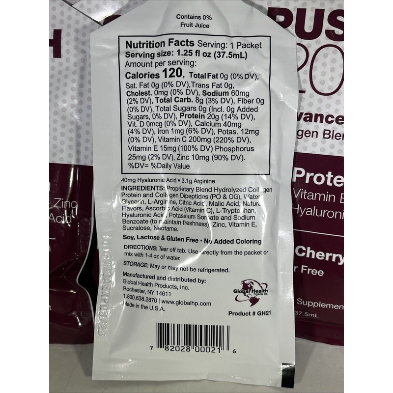 Global Health Products Push 20 Plus Collagen Wound Healing Concentrate Black Cherry 5 pack