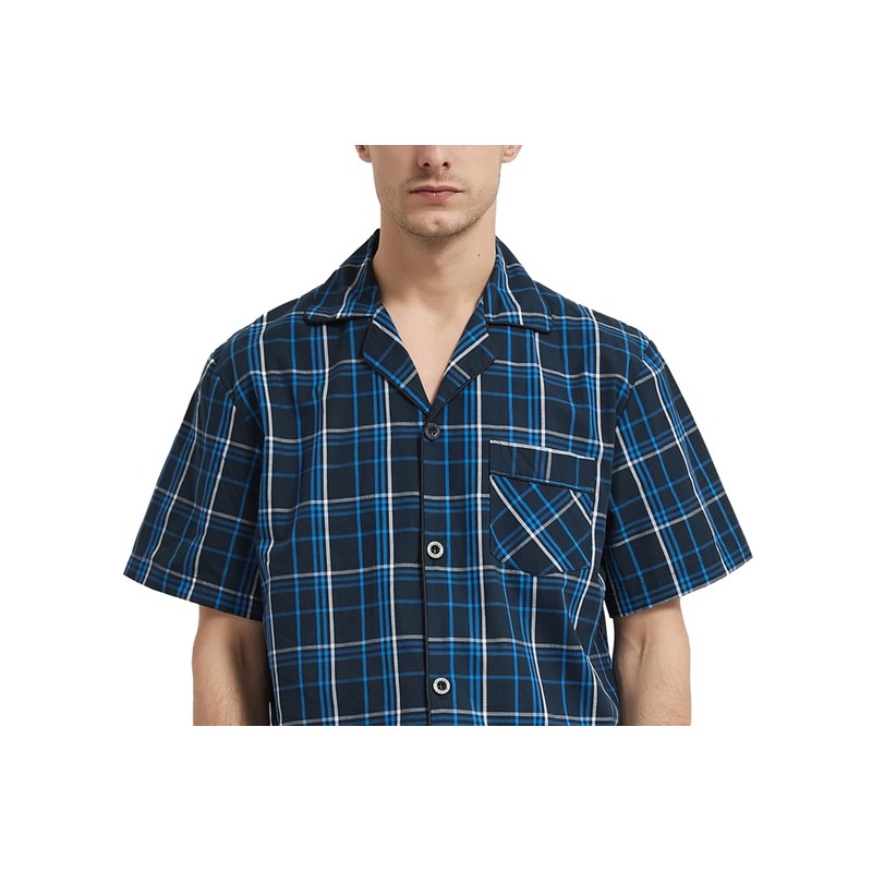 • Nuevos estilos. La pijama suave para hombre cuenta con un diseño de moda en cada detalle. La nueva moda muestra el comportamiento de caballero en la opción en la vida que ocupa el hogar. Los pijamas cortos clásicos a cuadros son adecuados para varias ocasiones como dormir, acostarse en el sofá, trabajar en casa, descansar en el patio, disfrutar de reuniones.