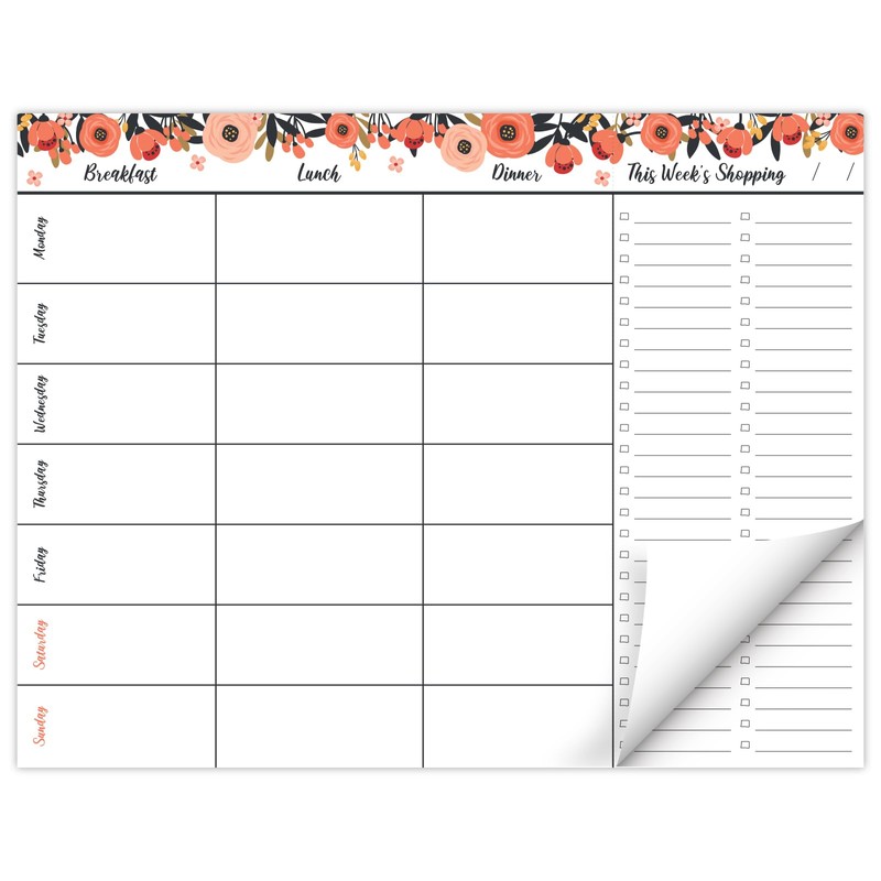 Global Printed Products 8.5" x 11" Horizontal Meal Planning Pad, 60-Sheets, Peach & Pink Floral