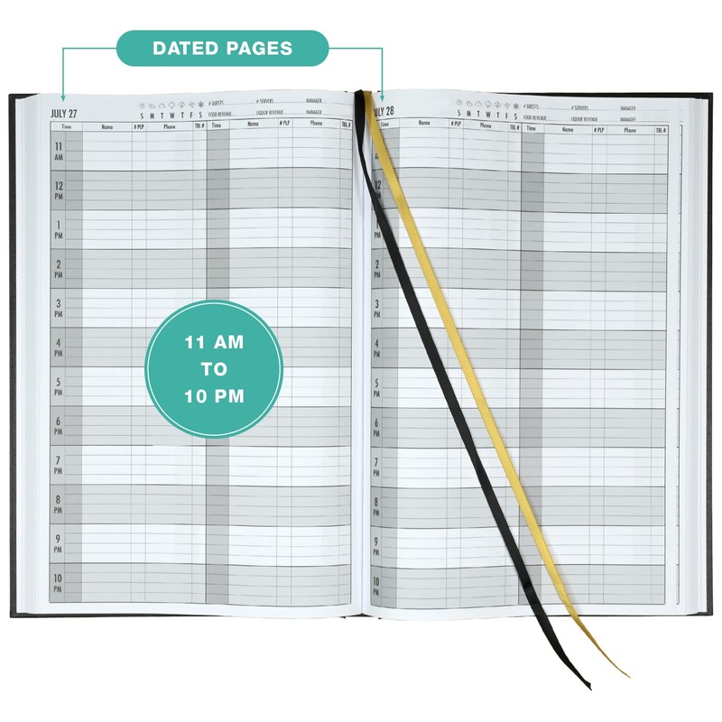 • THE PERFECT SIZE - Measuring 13.5 inches by 8.5 inches, this reservation book will lay flat and look fantastic on any podium or lectern.