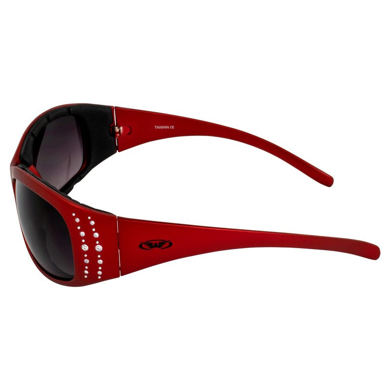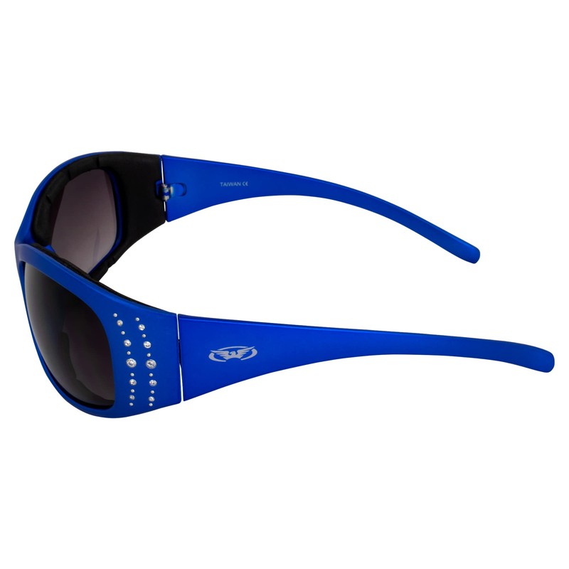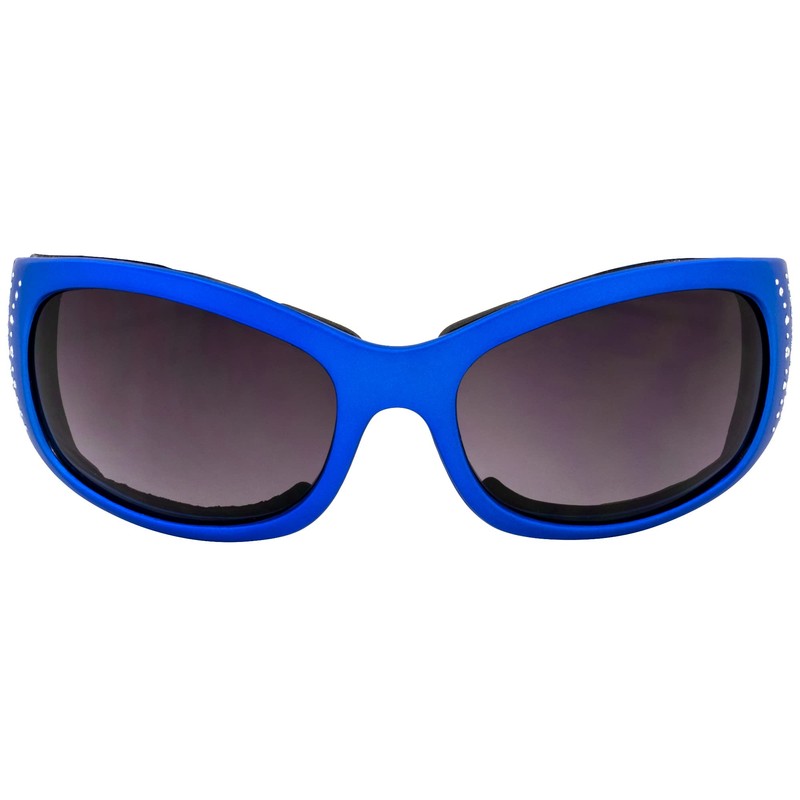 Global Vision 2 Pair Marilyn-2 Padded Motorcycle Riding Sunglasses with Rhinestones and Gradient Smoke Lens 1 with Metallic Red Frame 1 with Metallic Blue Frame