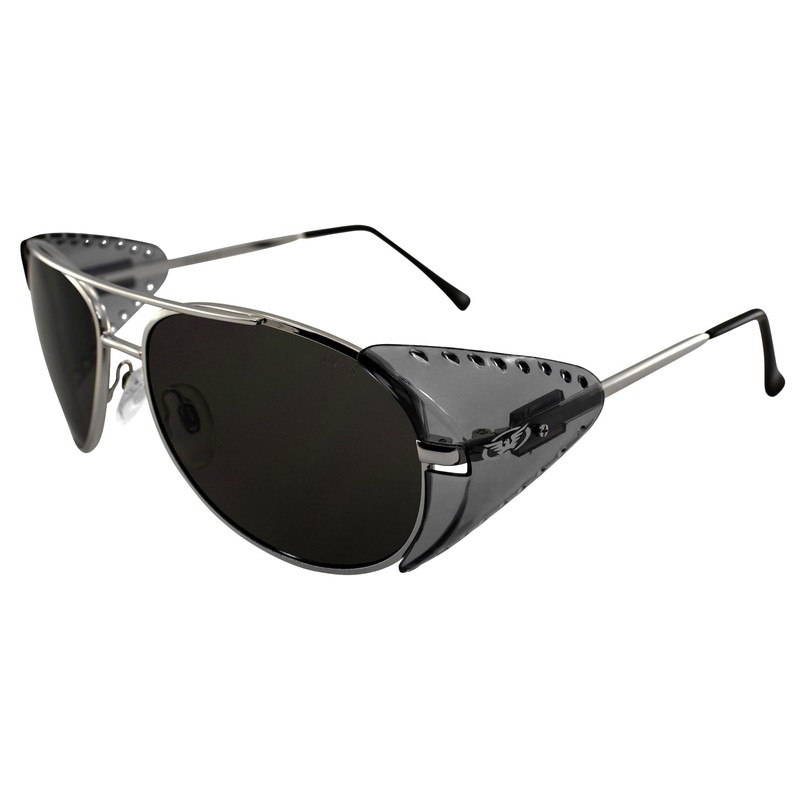 Global Vision Eyewear Aviator Z87 Motorcycle Sunglasses Silver Frames Smoke Safety Lens