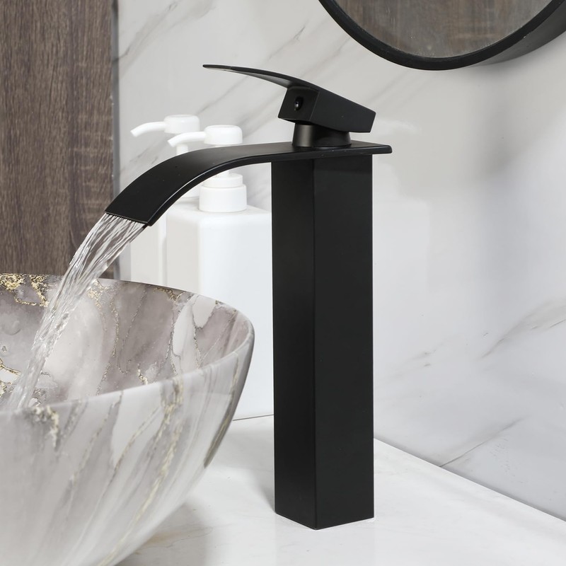- ▶〖Package Contents〗- - The round marble gray ceramic sink with waterfall black faucdet and pop up drain, a complete set avoid choosing matching faucet and drain