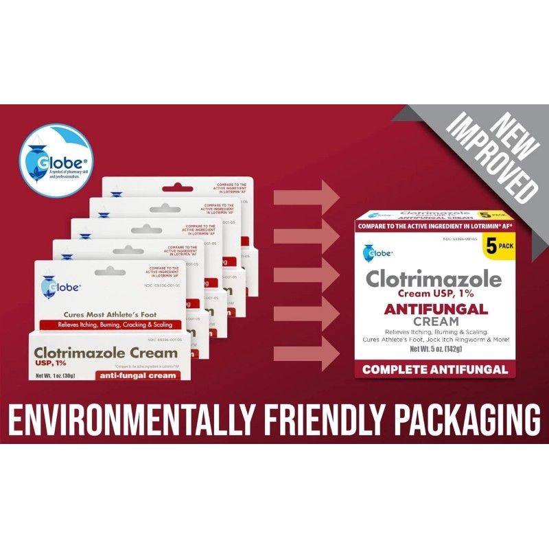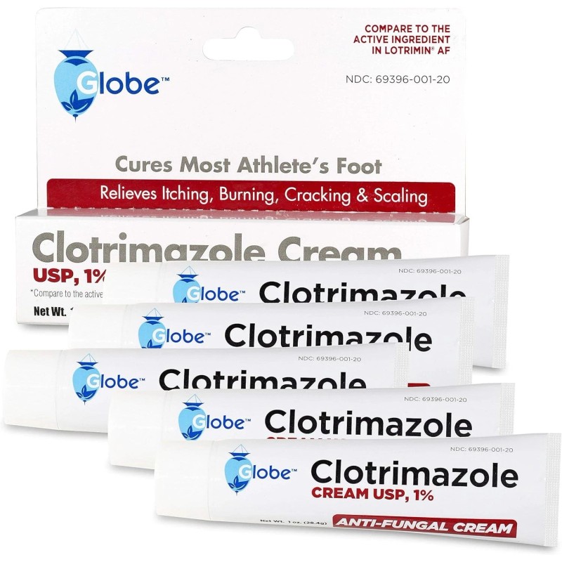 Globe 5 Pack Anti-Fungal Cream Cure Athletes Foot,Jock Itch,Compare to Lotrim...
