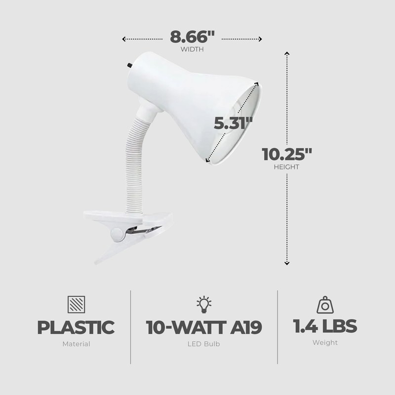 Globe Electric 10.25 Inch 10 Watt A19 Goose Neck Clip Lamp with Non Dimmable LED Bulb and Rotary On/Off Switch on Socket, White