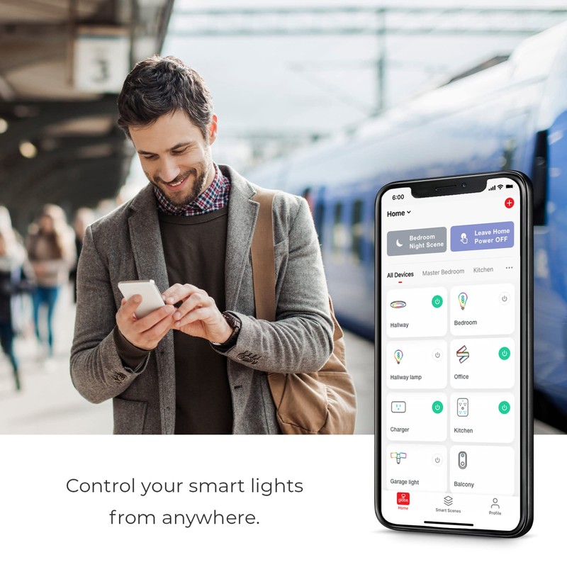 - LET THERE BE LIGHT: Create custom scenes to set the mood for your party, relaxation, game watching or preparation from across the room or across the country. It's as easy as the touch of your screen.