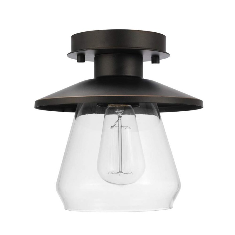 Globe Electric 64846 1-Light Semi-Flush Mount Ceiling Light, Oil Rubbed Bronze, Clear Glass Shade, Ceiling Light Fixture, Light Fixtures Ceiling Mount, Bedroom Lights for Ceiling, Dining Light Fixture