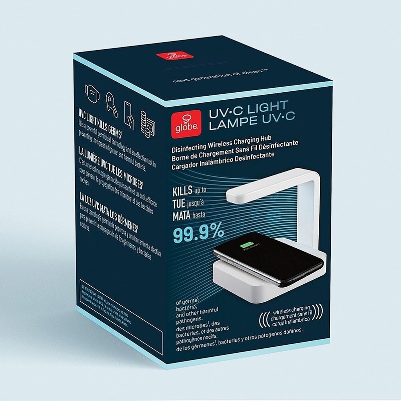 Protecting your health and the health of your family has never been easier. Smartphones are used everyday both inside and outside the home and it's easy to forget to clean them. The globe electric UV-C Light Disinfecting Wireless Charging Hub is the answer to your smartphone cleaning needs. It offers a powerful UV-C cleaning light plus a wireless charging station in a single tidy package. Killing up to 99.9% of bacteria, you can rest assured you and your family are protected from germs and other harmful pathogens.