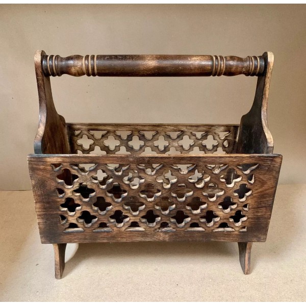 Globedecor 17" Magazine Rack Solid Wood Rustic Newspaper Basket Wooden Foldable Stand