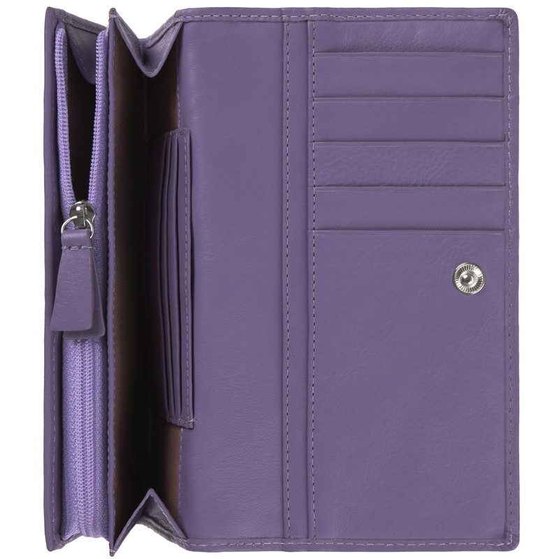 - This women's medium leather wallet impresses with elegant purple genuine leather and a sophisticated design that offers both style and functionality.
