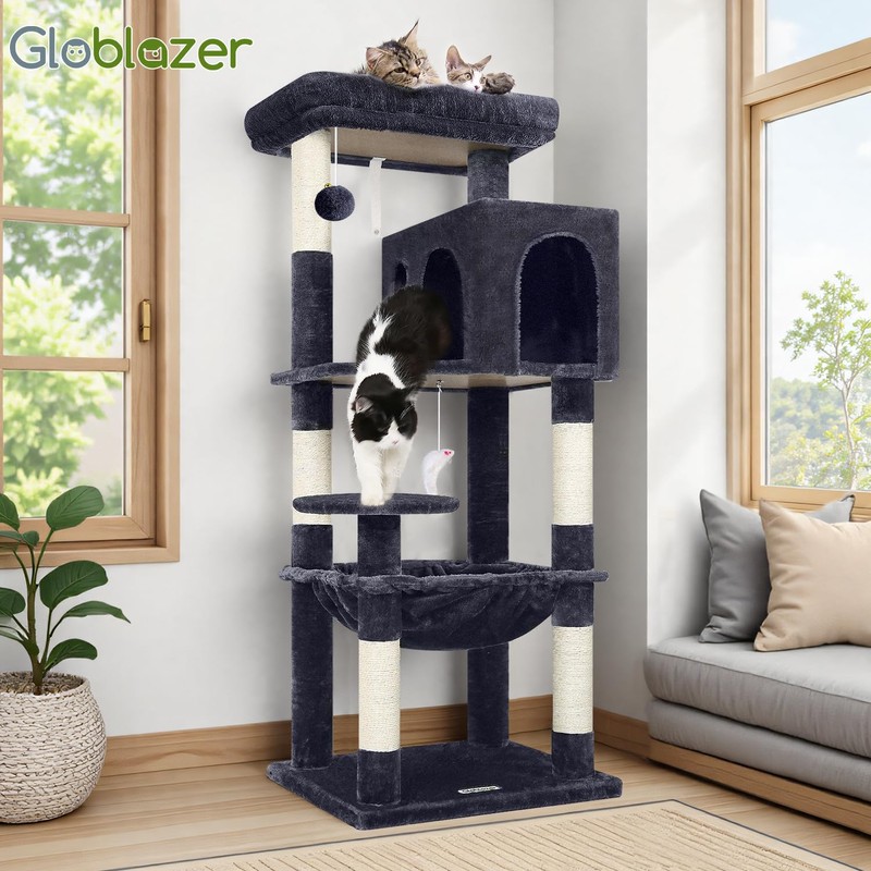 Why Choose Our Globlazer 53in Cat Tree Tower for Indoor Cats with Large Cat Condo House and Scratching Post, Cat Climbing Tree with Top Perch, Hammock, Large Cave and Platform
