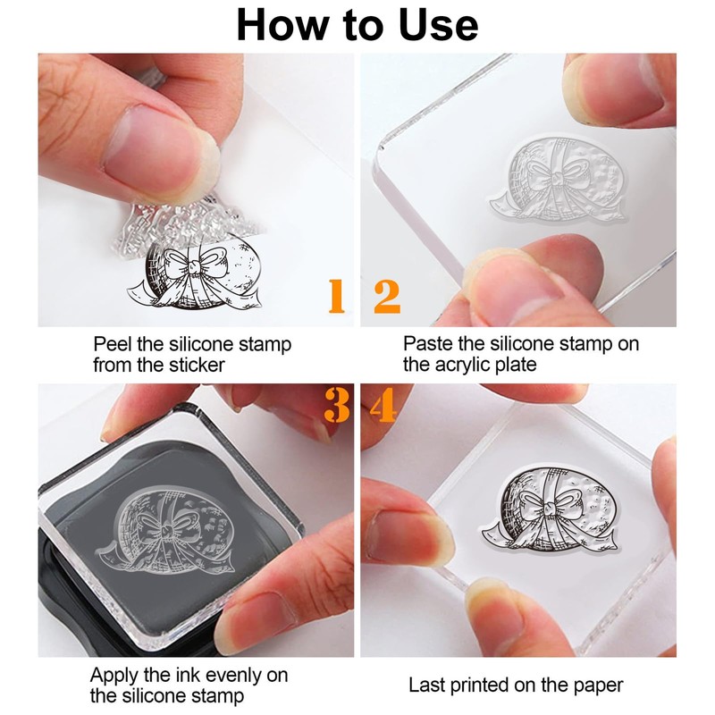 - How to Use: You can choose the clear silicone stamp you want, place the stamp on an acrylic block, apply ink on it and stamp the coloring stamp onto paper or card repeatedly, then wait for it to dry and a beautiful project is completed. (Acrylic block and ink not included.)