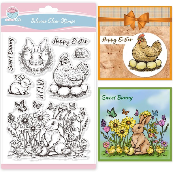 GLOBLELAND Easter Rabbit Clear Stamps for Card Making Easter Chicken Silicone Stamp Greetings Happy Easter Transparent Stamps Seal for DIY Scrapbooking Embossing Photo Album Decor