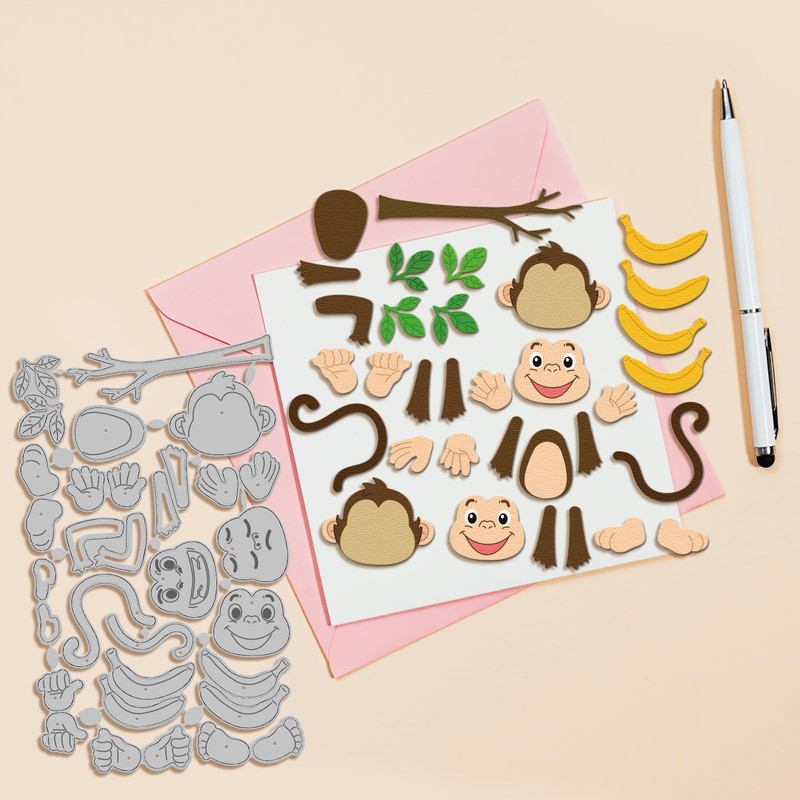 - Packaging Includes: The package includes 1set funny monkey cutting dies, 20pcs in total, the metal die cuts include various patterns of funny monkey, twig, fruits, bananas, leaves, etc. These different styles of die cuts will fulfill many of your diy requirements.